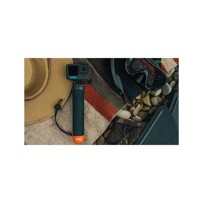 Báng cầm nổi GoPro The Handler mang lại hỗ trợ và độ ổn định tiện ích cho máy quay hành trình của bạn kể cả trên cạn hay dưới nước. Báng cầm tự nổi lên được nếu bị rơi xuống nước, dễ dàng định vị nhờ nắp màu cam nổi bật ở đế báng.