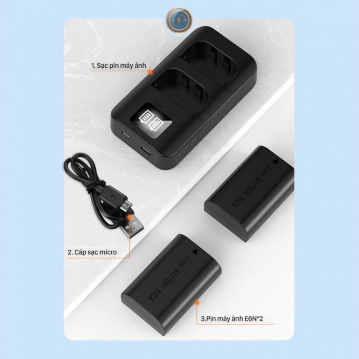 - Pin có thể dùng thay thế hoặc dự phòng cho pin Canon LP-E6N gốc