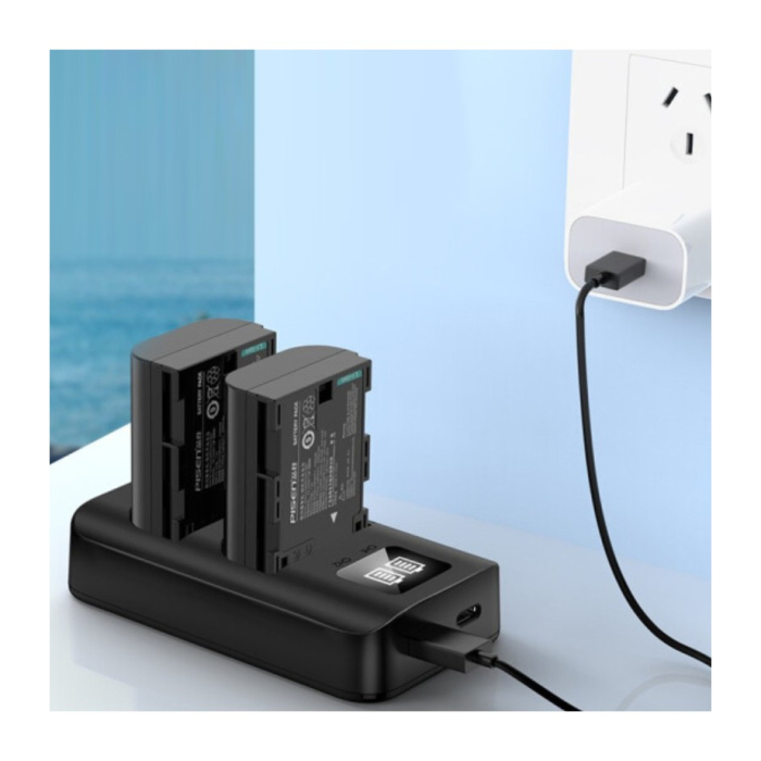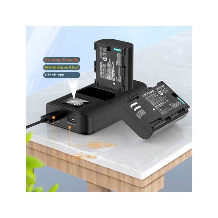 Bộ 2 pin & sạc Pisen LP-E6NH dùng cho Canon bao gồm một sạc và hai pin lithium-ion 2250mAh tương thích với các dòng máy ảnh Canon sử dụng hệ pin LP-E6NH.