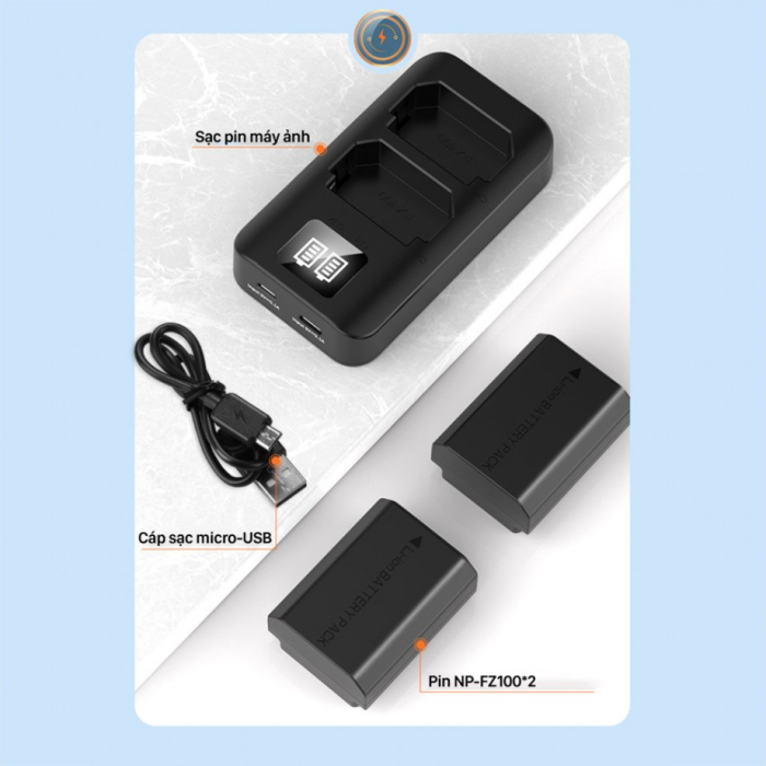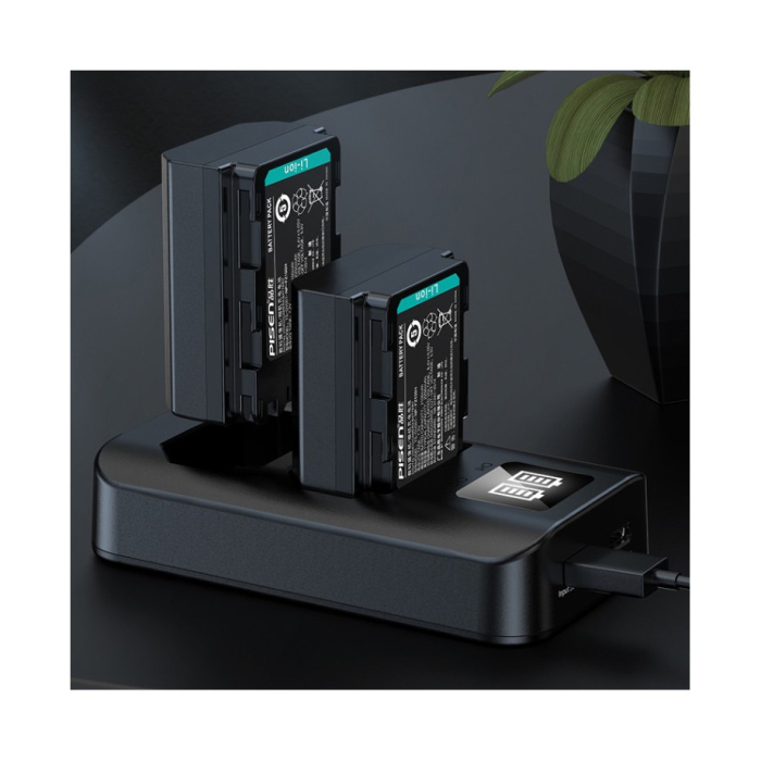 Bộ 2 pin & sạc Pisen NP-FZ100H dùng cho Sony bao gồm một sạc và hai pin lithium-ion 2250mAh tương thích với các dòng máy ảnh Sony sử dụng hệ pin NP-FZ100.