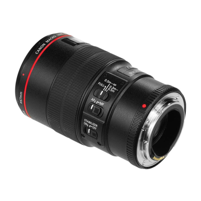 Canon EF 100mm f/2.8L Macro IS USM là ống kính Macro phổ biến của Canon. Đây là dòng ống kính thuộc dòng L-series cao cấp nhất của Canon với hệ thống quang học tối ưu nhất. Bao gồm các thấu kính tán xạ cực thấp và cấu trúc chống ẩm, chống bụi hiệu quả. Với tiêu cự 100mm rất lý tưởng để chụp ảnh chân dung và các ứng dụng tele với tỉ lệ phóng đại 1:1. Khoảng cách lấy nét tối thiểu 30.48cm cho phép bạn chụp cận cảnh tuyệt vời.