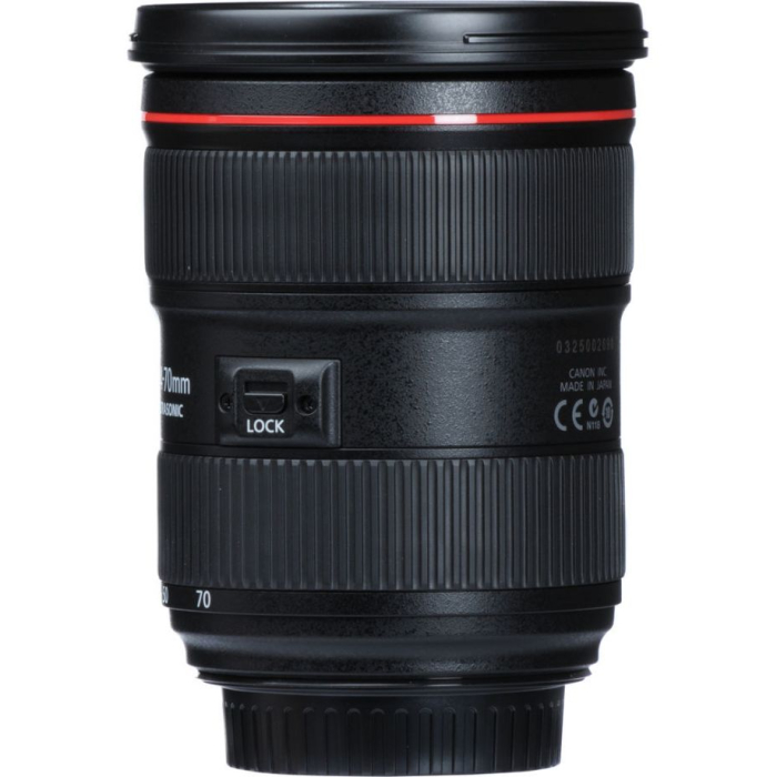 Ống kính khi zoom vẫn "thò thụt" tương tự như phiên bản I nhưng ngắn hơn một chút. Vòng zoom có vẻ hơi nặng tay khi mới dù dùng thử hứa hẹn sẽ giúp thao tác chuẩn xác hơn. Thân ống có thêm một nút khóa riêng biệt để khóa chỉnh zoom khi đang chụp cũng như công tắc bật tắt tính năng bắt nét chỉnh tay. Một điểm khá đặc biệt là dù thuộc dòng ống kính L cao cấp nhưng Canon EF 24-70mm f/2.8L II USM F2.8 USM không có số code đi kèm như các phiên bản trước đây.