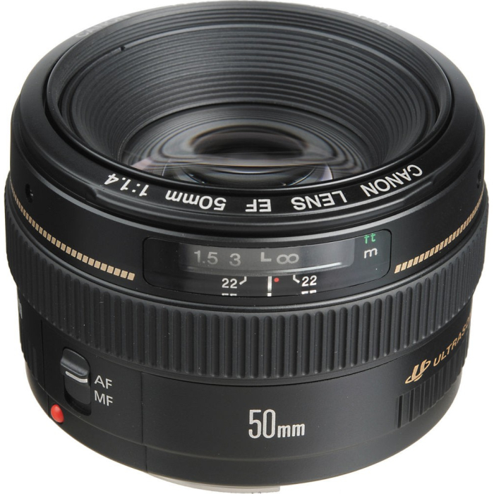Ống kính Canon EF 50mm F1.4 USM là ống kính có tiêu cự cố định (trên máy full frame), còn gọi là ống Fixed. Ống kính có góc chụp chuẩn (như mắt người), cho chất lượng hình ảnh hơn cả mong đợi ở một ống kính viền vàng của Canon, nhờ hiệu suất quang học tương đương có thể tốt hơn các ống kính zoom mắc tiền, nhưng nhỏ, nhẹ và có giá thành thấp. Ở khẩu độ lớn hình ảnh mềm mại và mơ mộng, độ sắc nét tăng dần khi độ mở ống kính nhỏ dần. Nhiều người thường cân nhắc giữa ống kính này với ống kính Canon EF 50mm f/1.4 USM, tuy nhiên theo chúng tôi, nó hoàn toàn xứng đáng, hơn hẳn về chất lượng hình ảnh và khả năng lấy nét. Ống kính này khi dùng trên máy crop sẽ rất thích hợp để chụp chân dung cho hình ảnh đẹp hơn. Nó xứng đáng hơn bất kỳ loại ống kính tele rẻ tiền nào khác.