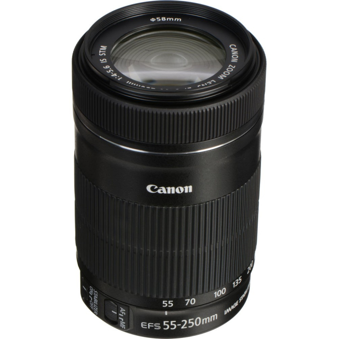 Ống kính Canon EF-S 55-250mm F/4-5.6 IS STM là một óng kính zoom dài rộng cung cấp dải tiêu cự tương đương 88-400mm theo định dạng 35mm, cho phép chụp chân dụng đến chụp tele và các đối tượng chụp ở khoảng cách xa. Tích hợp hệ thống ổn định hình ảnh IS giúp giảm thiểu tình trạng rung lắc máy ảnh lên đến 3.5 bước và hỗ trợ đắc lực trong khi chụp hình trong điều kiện ánh sáng yếu.