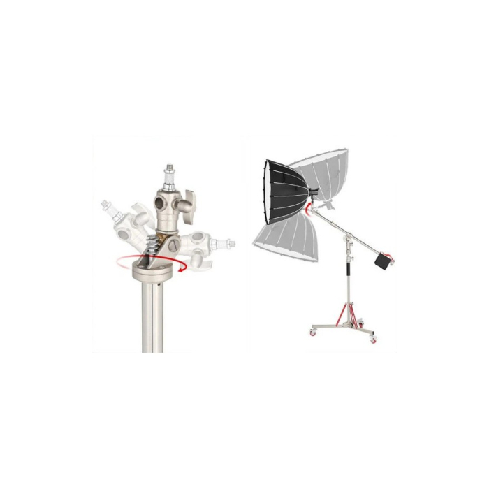Chân đèn có thể dễ dàng thao tác để điều chỉnh chiều cao đáp ứng ứng dụng, thuận lợi sử dụng với đa dạng thiết bị như đèn flash, đèn LED, softbox, dù,... trong studio hay địa điểm ngoài trời.