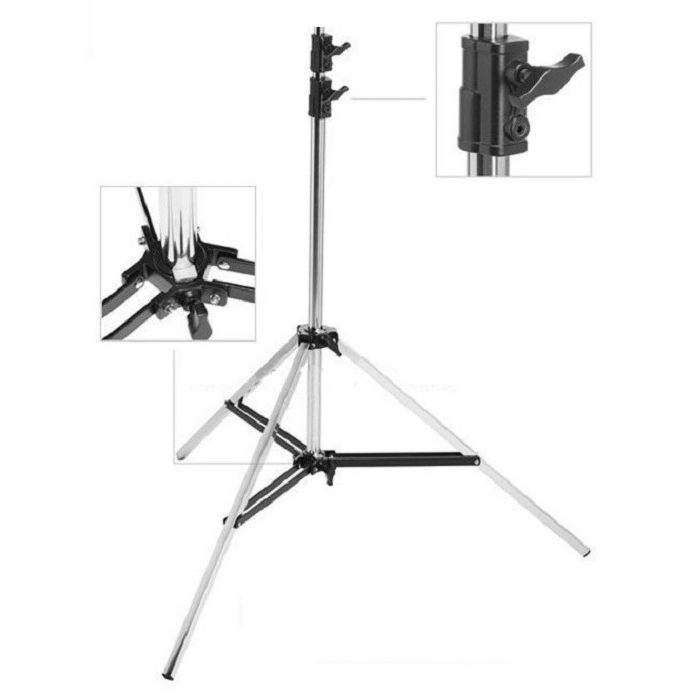Chân đèn inox 240 là thiết bị studio không thể thiếu và là lựa chọn hoàn hảo cho các thiết bị studio của bạn. Chân đèn làm từ chất liệu inox bền bỉ, chắc chắn, với chiều cao tối đa 240cm và tải trọng lớn phù hợp với đa dạng thiết bị studio như đèn flash, đèn LED, softbox, dù,...