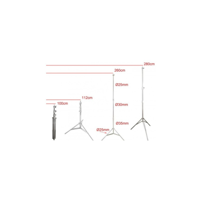 Chân đèn Qihe J288S Pro là phụ kiện cao cấp hỗ trợ chắc chắn cho đèn flash dành cho môi trường nhiếp ảnh chuyên nghiệp. Chân đèn này có chất liệu inox cứng cáp và bền bỉ, có chốt để cố định chắc chắn cho đèn. Thiết kế ba đoạn vững chắc, có thể đạt đến chiều cao tối đa 280cm hoặc thu gọn chỉ còn 100cm thích hợp cho nhiều tình huống tác nghiệp, di chuyển và bảo quản.