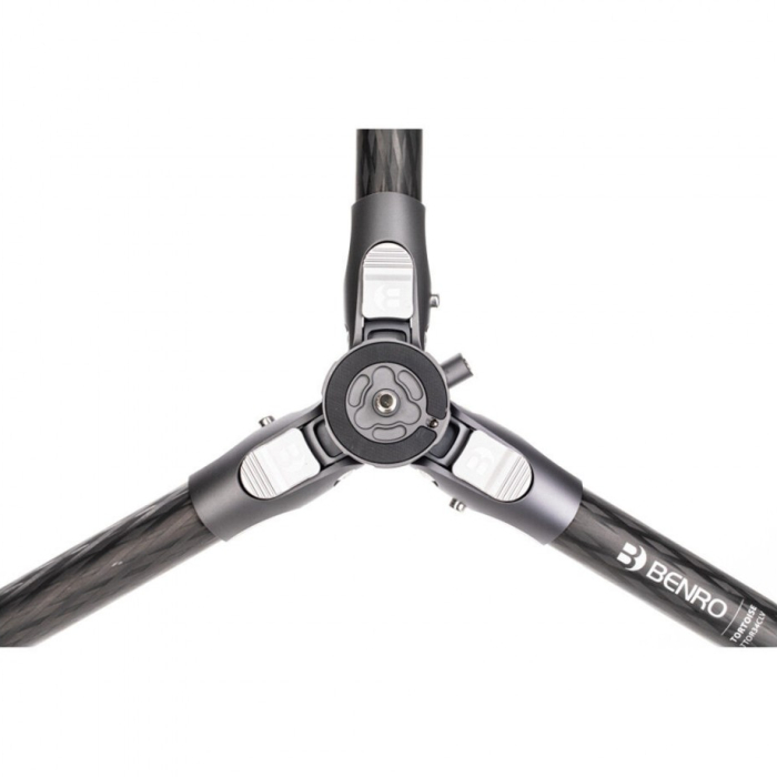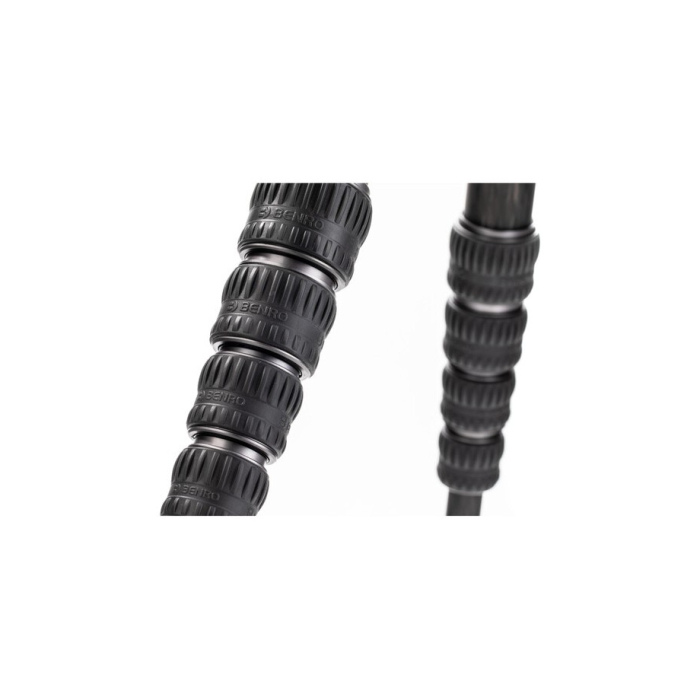 Chân sợi carbon sử dụng khóa chân khóa vặn để thiết lập nhanh chóng và an toàn. Đầu lắp vào chân tích hợp vít gắn phụ kiện 1/4"-20. Các chân có chuyển động độc lập với ba góc khóa và hệ thống khóa bằng nút bấm. Đế chân cao su có ba bề mặt tiếp xúc riêng biệt cung cấp độ bám dù chân thẳng đứng, nghiêng hoặc gần như nằm ngang khi thiết lập. Có thể tháo chân cao su và thay thế bằng chân gai đi kèm nếu muốn.