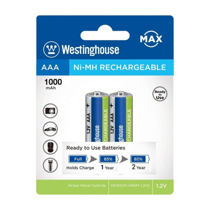 Pin sạc Westinghouse AAA 1000mAh (1 vỉ 2 cục) - Chính hãng