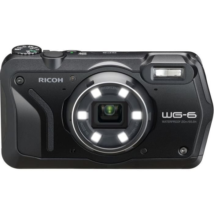Ricoh WG-6 là dòng camera nhỏ gọn thách thức mọi loại thời tiết, nổi trội với thiết kế cứng cáp ấn tượng kết hợp nhiều chế độ ghi hình và tính năng hình ảnh linh hoạt. Cấu trúc bên ngoài bền bỉ với khả năng chống nước đến 20m, chống sốc từ độ cao đến 2.1m cũng như chống đóng băng, chống vỡ, chống bụi và chống khử hóa chất. Về mặt hình ảnh, WG-6 trang bị cảm biến ảnh BSI CMOS 20MP cho phép chụp ảnh tĩnh chất lượng cao trong phạm vi nhạy sáng ISO 125-6400 và quay video 4K30 UHD, hỗ trợ các chế độ chống rung Movie SR+ và Movie SR giúp ổn định video.