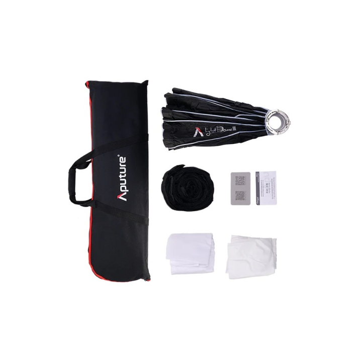 Được trang bị cơ chế tháo lắp nhanh hai mặt và có thể gập lại được nâng cấp, Aputure Light Dome III giúp tăng tốc thời gian thiết lập cho softbox tròn làm mềm nguồn sáng điểm 16 mặt, mang lại ánh sáng chuyên nghiệp, sẵn sàng cho chụp chân dung cho bất kỳ cảnh quay nào chỉ trong vài giây. Cấu trúc cong của Light Dome III được gia cố bằng 16 thanh đỡ bằng thép bền, giờ đây sẽ khớp vào đúng vị trí khi ấn xuống giá đỡ Bowens tương thích rộng rãi, giúp tiết kiệm thời gian quý báu khi quay chụp. Hình dạng của nó cũng thúc đẩy phân phối đầu ra ánh sáng đồng đều để có ánh sáng mềm mại, đồng đều trên mọi chủ thể. Bộ điều chỉnh có phần bên trong màu bạc để tối ưu đầu ra của nguồn sáng và đi kèm với bộ khuếch tán phía trước 1,5 stop và 2,5 stop với lưới vải 40° để có khả năng định hình ánh sáng tốt hơn.
