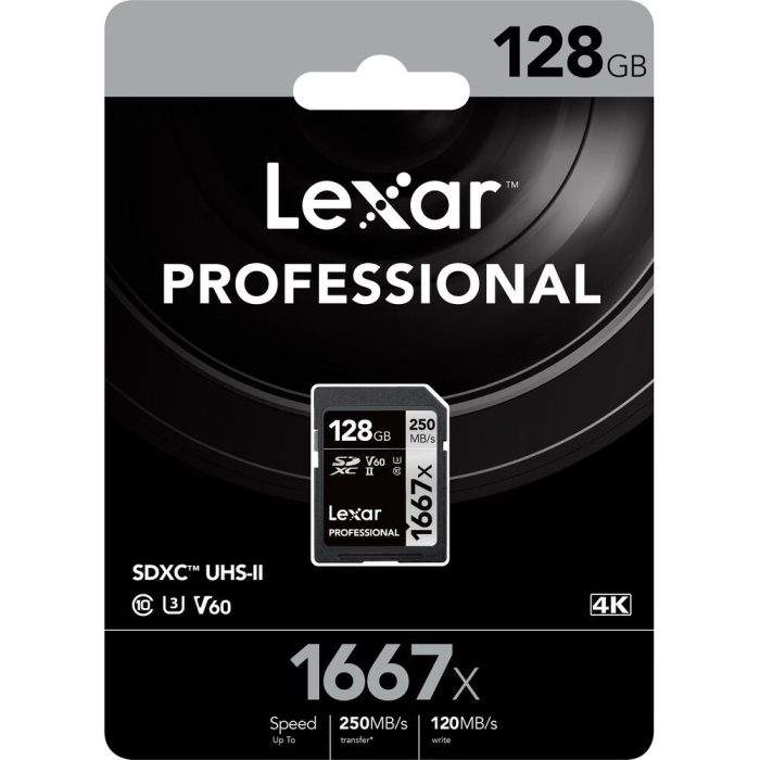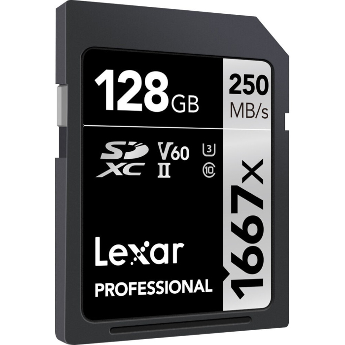 Thẻ nhớ SDXC Lexar 128GB 250MB/s Professional 1667x UHS-II Silver Series thuộc dòng thẻ nhớ SDXC 1667x UHS-II Silver Series chuyên nghiệp, hỗ trợ các chức năng nâng cao cho máy ảnh kỹ thuật số như chụp liên tục và chụp nhanh, cũng như chụp ảnh RAW và JPEG. Thẻ nhớ này cũng rất phù hợp để quay video, bao gồm video 4K, 3D và Full HD, đồng thời có thể đạt tốc độ đọc tối đa lên đến 250MB/s và tốc độ ghi tối đa lên đến 120MB/s. Nhờ xếp hạng loại tốc độ V60, tốc độ ghi tối thiểu được đảm bảo không giảm xuống dưới 60MB/s.