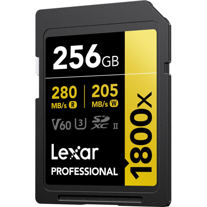 Thẻ nhớ SDXC Lexar 256GB 280MB/s Professional 1800x UHS-II Gold Series thuộc dòng thẻ nhớ SDXC 1800x UHS-II Gold Series chuyên nghiệp, hỗ trợ các chức năng nâng cao cho máy ảnh kỹ thuật số như chụp liên tục và chụp nhanh, cũng như chụp ảnh RAW và JPEG. Thẻ nhớ này cũng rất phù hợp để quay video, bao gồm video 4K, 3D và Full HD, đồng thời có thể đạt tốc độ đọc tối đa lên đến 280MB/s và tốc độ ghi tối đa lên đến 205MB/s. Nhờ xếp hạng loại tốc độ V60, tốc độ ghi tối thiểu được đảm bảo không giảm xuống dưới 60MB/s.