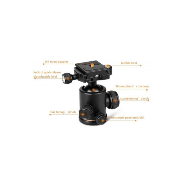 Chân máy sử dụng đầu ball head Panorama QZ03, hỗ trợ chụp lia máy theo chiều ngang, đầu bi chất lượng cao mang lại độ ổn định và chắc chắn khi đặt máy.