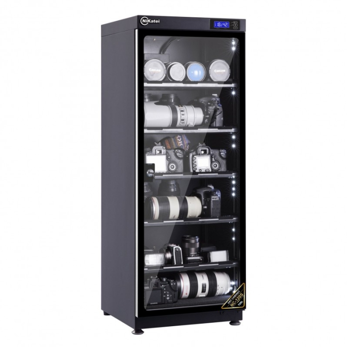 - Nikatei NC-120S (120 lít) gồm một khoang lớn có cánh cửa kính 2 lớp chống xước được thiết kế chịu sự va đập và đảm bảo tuyệt đối độ ẩm bên trong với hệ thống gioăng cao su từ bao quanh tạo nên sự chắc chắn mỗi khi mở ra đóng vào.